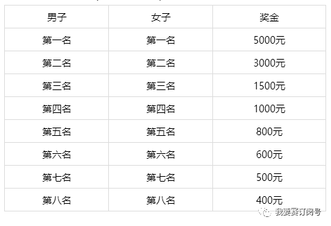 半程马拉松名次奖金(21.0975公里)